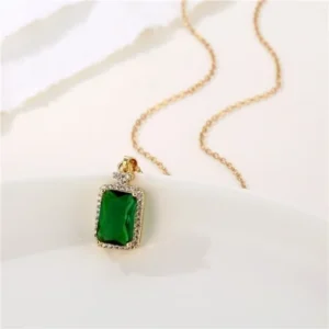 κολιέ Χρυσό Σμαράγδι από ανοξείδωτο ατσάλι με πράσινη πέτρα