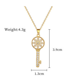 Μινιμαλιστικό γεωμετρικό κολιέ κλειδί με ένθετο διαμάντι από τιτάνιο χάλυβα