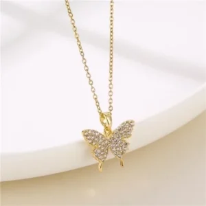 Shiny Angel Peacock Butterfly Ανοξείδωτο ατσάλι Τιτάνιο Ατσάλι Ένθετο Ζιργκόν 18 καρατίων Επιχρυσωμένο κρεμαστό κολιέ