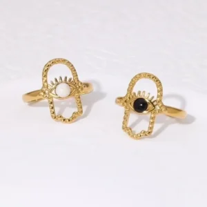 Casual Μινιμαλιστικό Γεωμετρικό Ανοξείδωτο Ατσάλι Hollow Out Inlay Ανοιχτοί δακτύλιοι χρυσό με μαύρη πέτρα