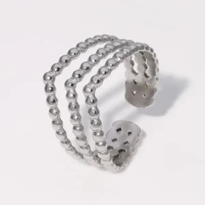 Casual Μινιμαλιστικό Γεωμετρικό Ανοξείδωτο Ατσάλι Hollow Out Inlay Ανοιχτοί δακτύλιοι ασημί