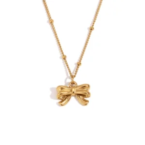 Bead Chain Bow Κρεμαστό κολιέ-χρυσό