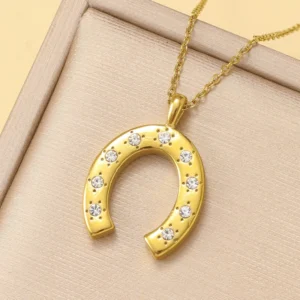 Κολιέ ατσάλινο με κρεμαστό μάτι χρυσό γεμάτο μικρά ζιργκόν λευκά και μπλε