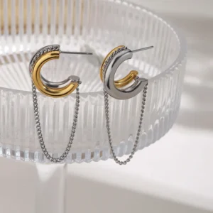 Σκουλαρίκια ατσάλι κρίκοι με αλυσίδα