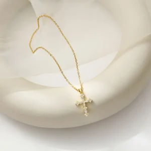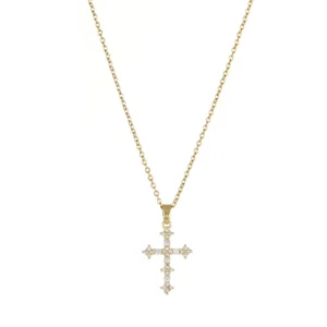 Κολιέ χρυσό ατσάλι με σταυρό στρας