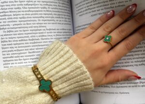 Χρυσό Βραχιόλι με πράσινο κυκλικό σταυρό