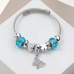 Κομψό βραχιόλι ασύμμετρης επιμετάλλωσης πεταλούδας σε σχήμα καρδιάς από ανοξείδωτο ατσάλι